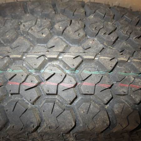 Trailer mounted on a galvanized wheel Bolt pattern measures to be 5 on 4.5 tire has never been on the road or mounted - see pics Price is firm if you see the ad it is still available