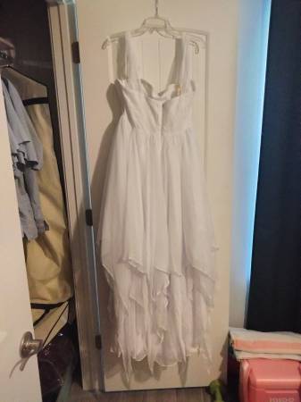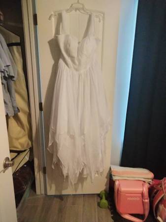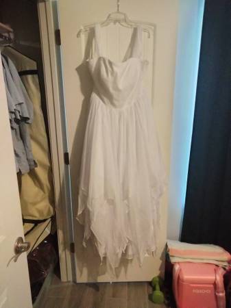 Brand New wedding dress for sale never used. It still has tags. Size 20W... Bust 47 inches... Waist 40 3/4 inches... Hips 49 1/2 inches... Hollow to floor 61 inches. The sleeves can be used as...
