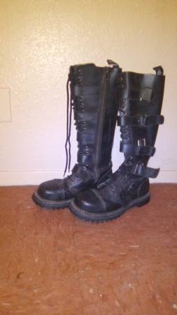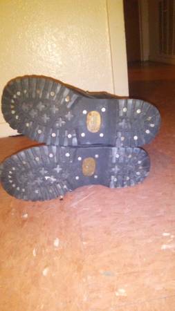 Size is 11, mens black leather lace up boots, has straps on both boots.One boot missing the buckle but other than that great condition for their age.I paid $250. Years ago, always been stored,I...