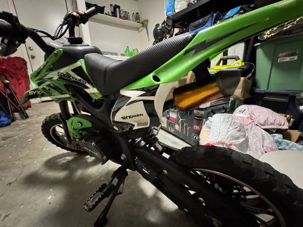 I’m selling a dirt bike it’s green I’m trying to get rid of it to make up space in my garage it’s in great condition it’s a 50cc I think or higher I have the keys for it and the battery is on it’s a great toy for kids to learn I have two girls they never used it. I’m asking for 500 but we can negotiate again just trying to make space in garage. I need it gone