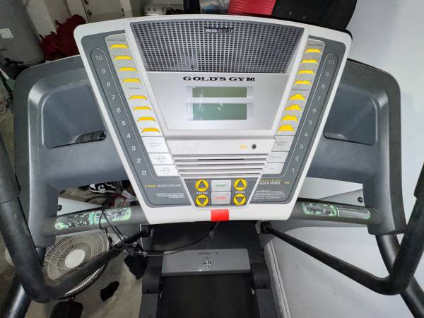 I have. Golds Gym treadmill talking up space It works in great condition fan work very fast I need it gone ASAP need space for space garages asking 350 or 400 or whatever offer: just needs cleaning....