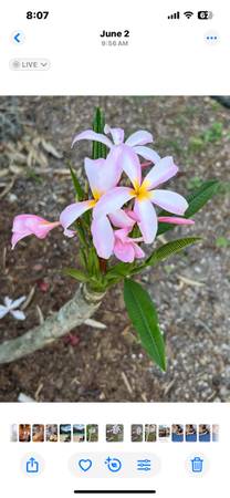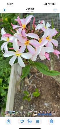 2 feet tall potted in 10” pots. Plumeria plants are rooted and ready to bloom.