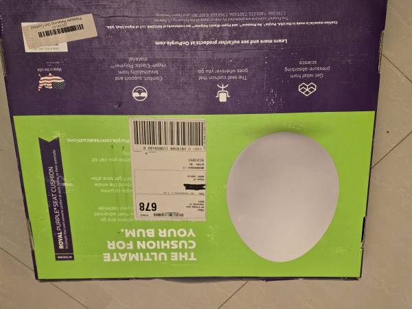 Unused, unopened Purple Royal seat cushion. Comes with the washable cover.