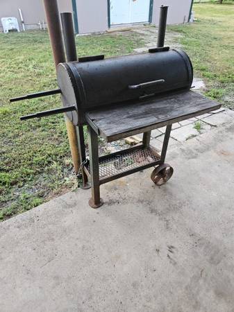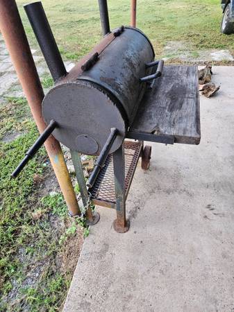 BBQ pit Needs paint job. One wheel is stuck. (No rotation) Heavy Cooks well. Will take an offer. Call with any questions. Thanks!