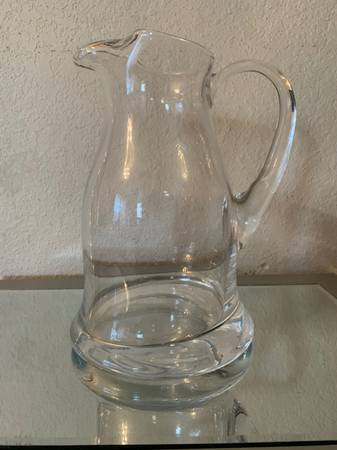 Really Nice Beautiful Heavy Thick Glass Pitcher! Ideal For Serving Water, Iced Tea, Lemonade, Juice Or Other Beverages. In Excellent Condition No Chips Or Cracks. Measure 9” Tall and holds 48 ounces. If interested please text or call me. Cash Only And Must Pickup In Port Isabel
