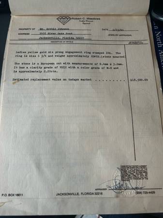 Appraised in 1982 for 18,500. Antique European cut.