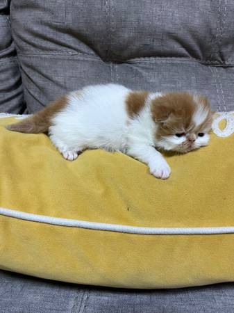 White and orange male Persian kitten, beautiful, ready for a new home,