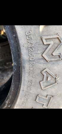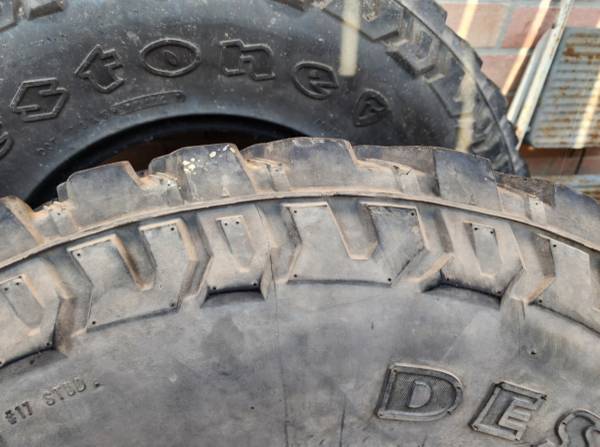 I have two 35 inch used Firestone mud tires for $100 Tengo dos llantas usadas para lodo de Firestone de 35 pulgadas por $100