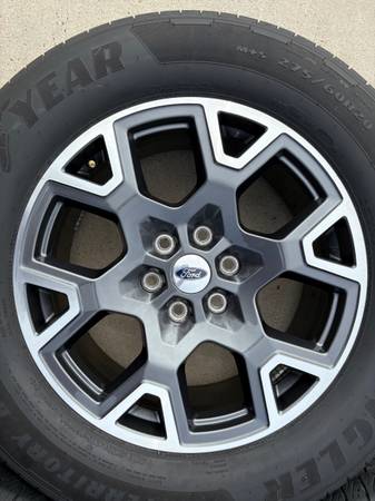 Brand new OEM 20" Ford wheels with Goodyear tires. These are new factory take offs that will fit full size 6 LUG Fords. Factory lug nuts and wheel locks included. Call or text show contact info